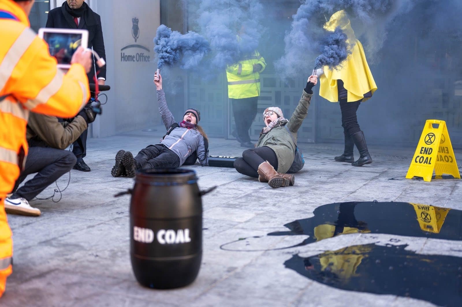 11 JAN | London, UK: Rebels pour black paint over the government department that green lit the construction of a new deep coal mine, the first in the UK for 30 years.