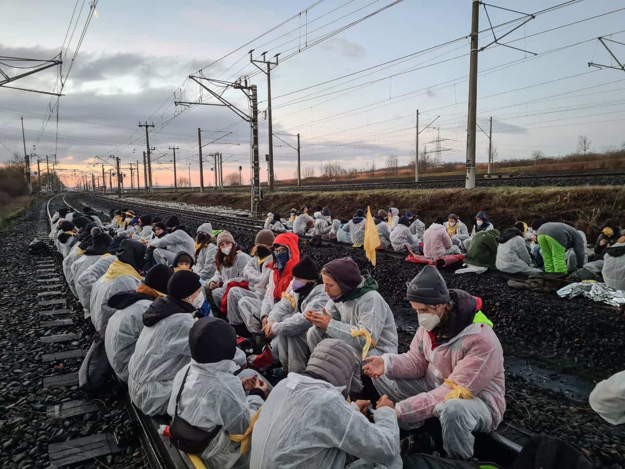 Activists with Ende Gelände block a railway taking the coal to an RWE power station.