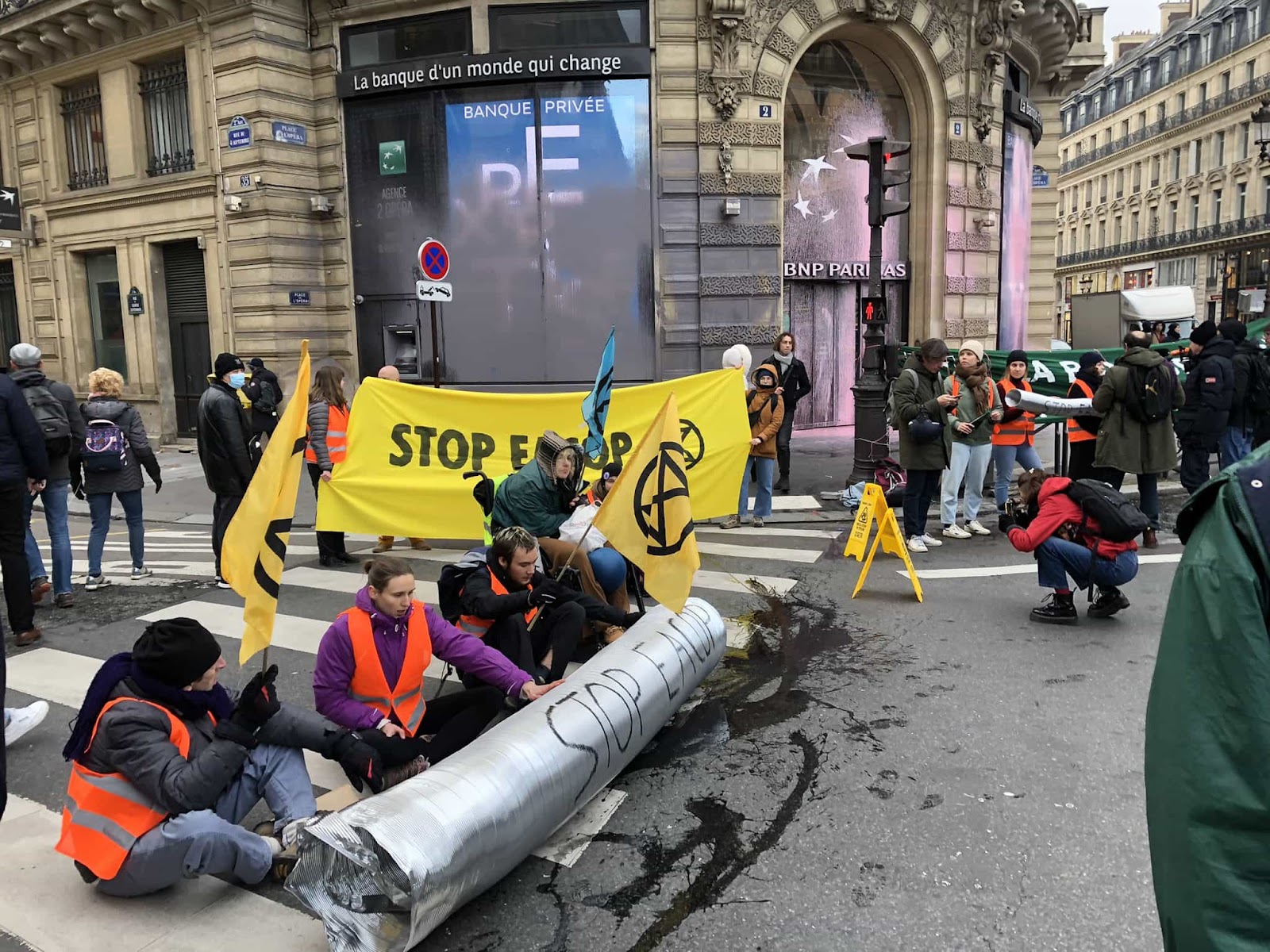 20 JAN | Paris, France: 40 rebels and other activists blockade and repaint several buildings belonging to BNP Paribas. The French bank is the country’s worst fossil fuel investor, and a key financier of Total’s ecocidal African mega-pipeline EACOP.