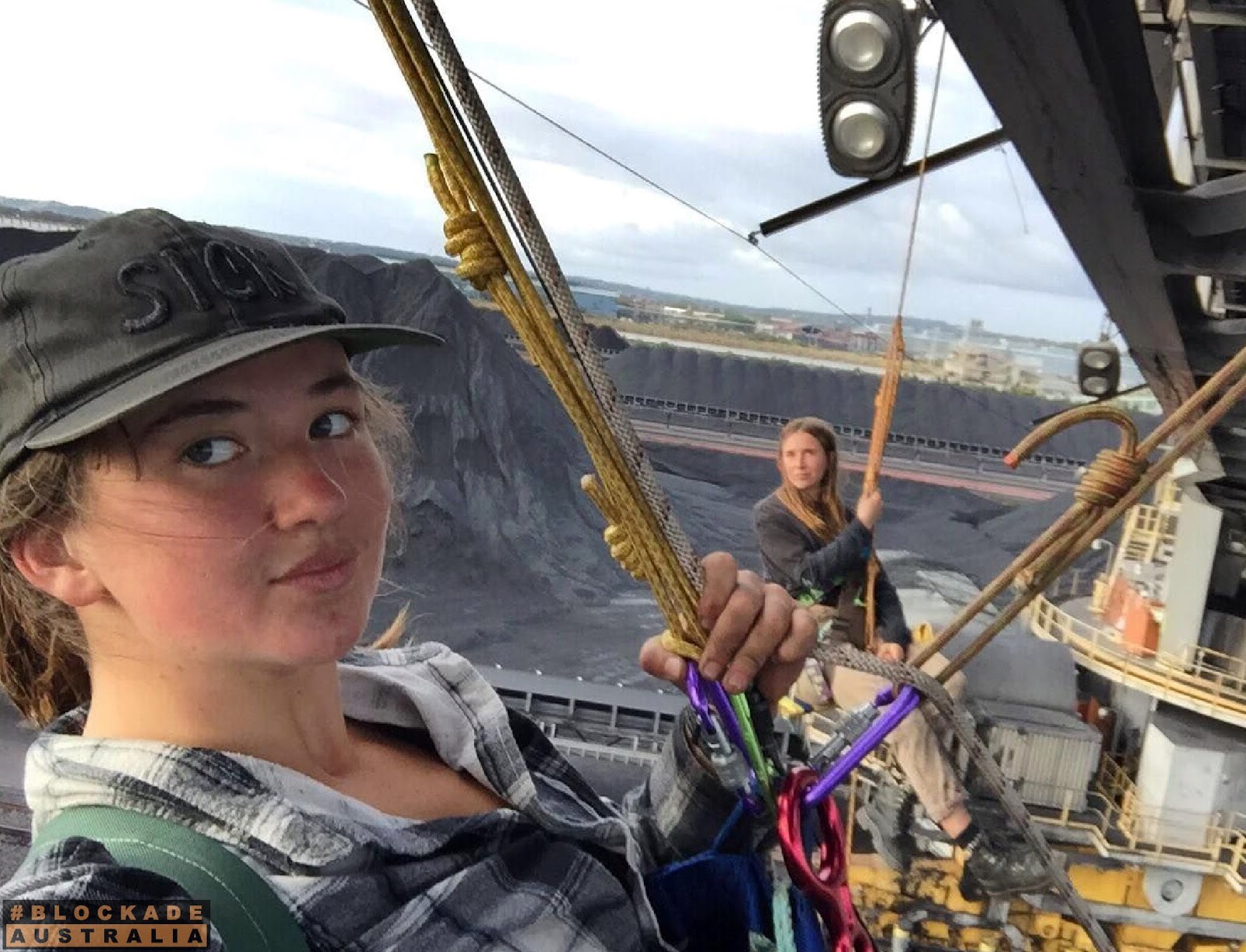 Activists hit emergency stop buttons and harness themselves to coal port machinery.