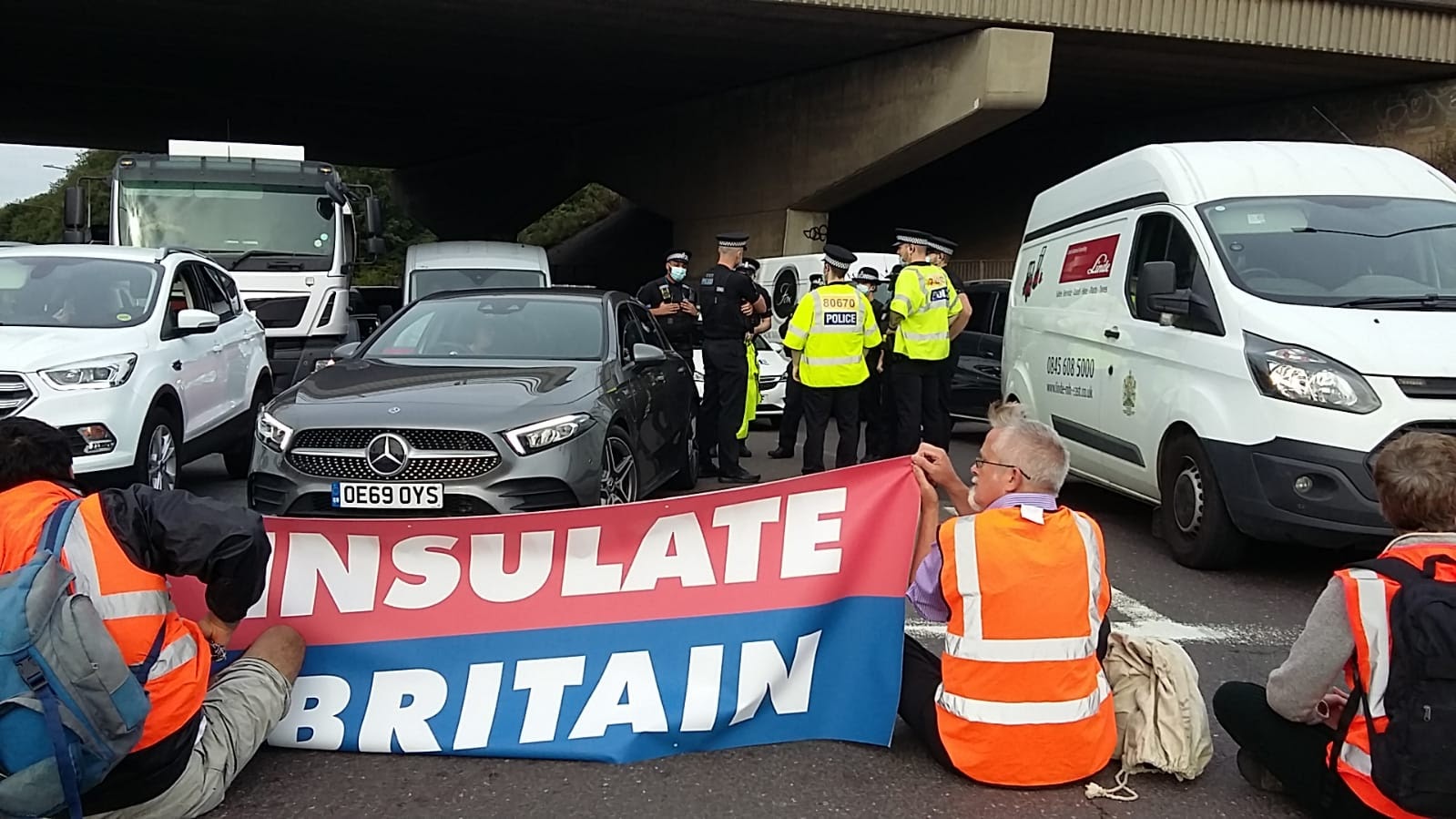 Insulate Britain’s first ever blockade of the M25. Police consider their options.