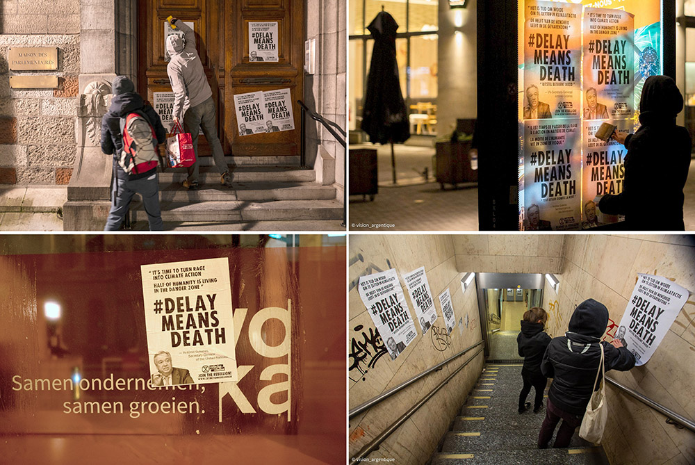 Highlights include rebels in Berlin erecting a huge 1.5°sculpture on a central bridge (and proclaiming it dead) and rebels in Brussels going on an overnight poster campaign that saw ‘Delay Means Death’, a quote from UN Secretary General, appear all over the city.