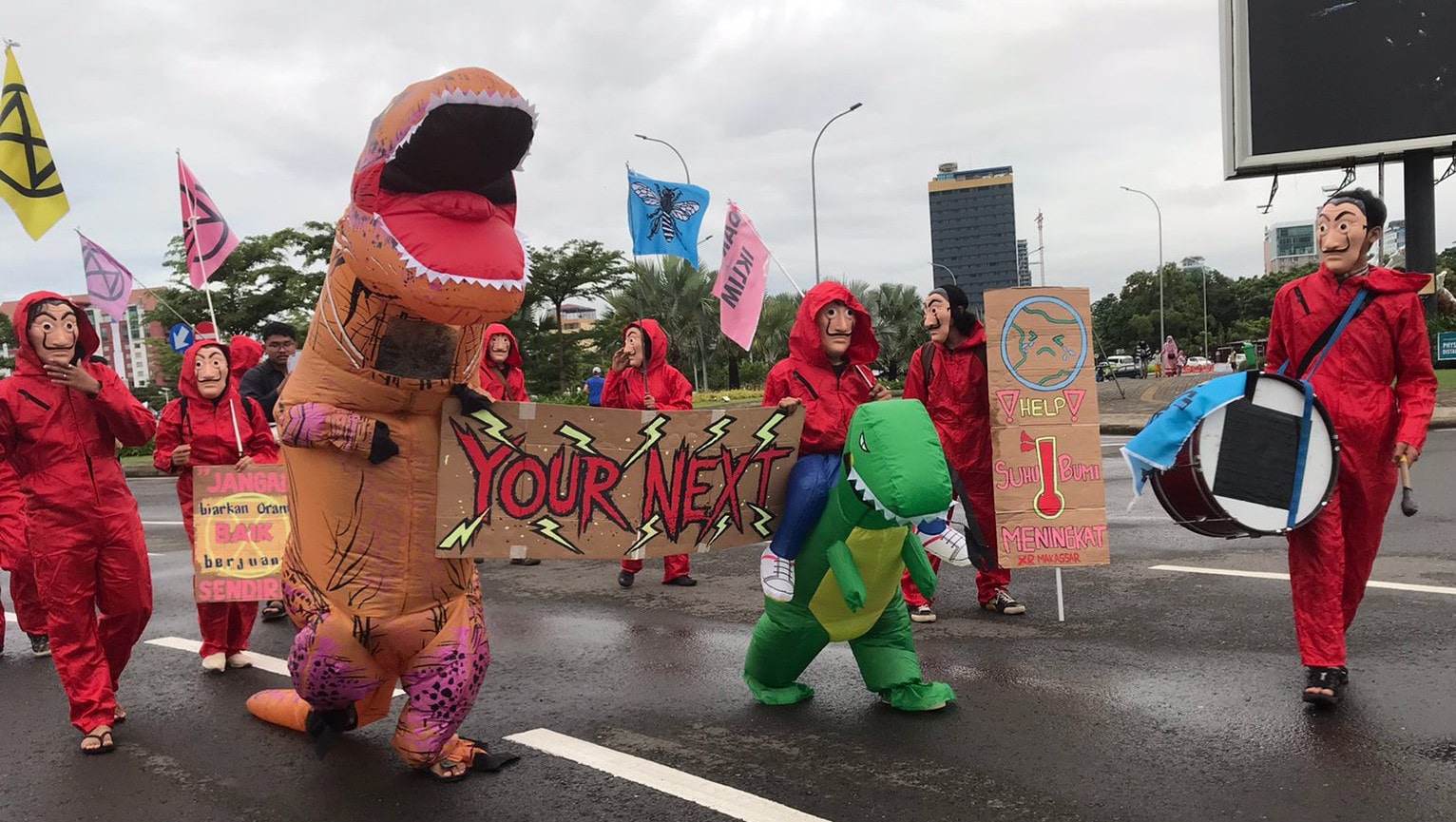 Indonesian women rebels of XR Makassar march as part of Women’s Climate Strike.