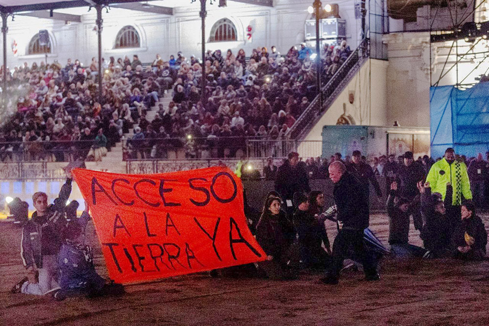 21 JUL | Buenos Aires, Argentina The first direct action of the Without Land There is Hunger campaign. On the opening day of the 134th International Livestock, Agriculture and Industry Exhibition, activists entered the arena to make their historic claim in support of the peasant movements that have been fighting for years for fair access to land. Photo: @tomifcuesta.