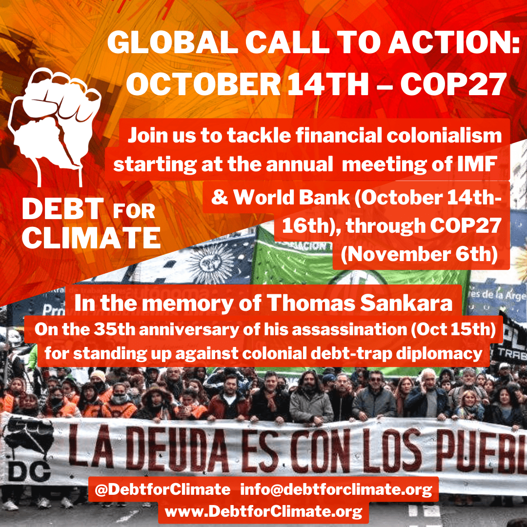 A month of international actions will start during the annual meeting of the IMF and World Bank (October 14 - 16) and continue through to COP27 (November 6 - 18).