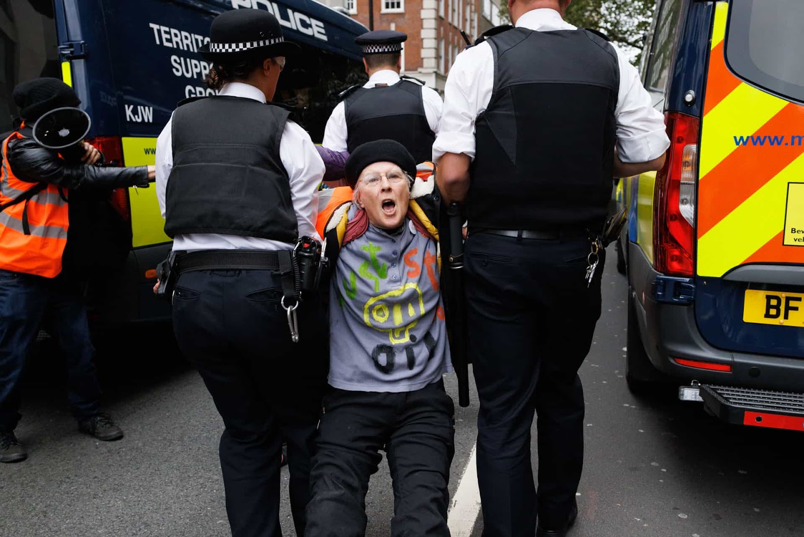 A Just Stop Oil activist is arrested in London, one of 718 arrests in the last month.