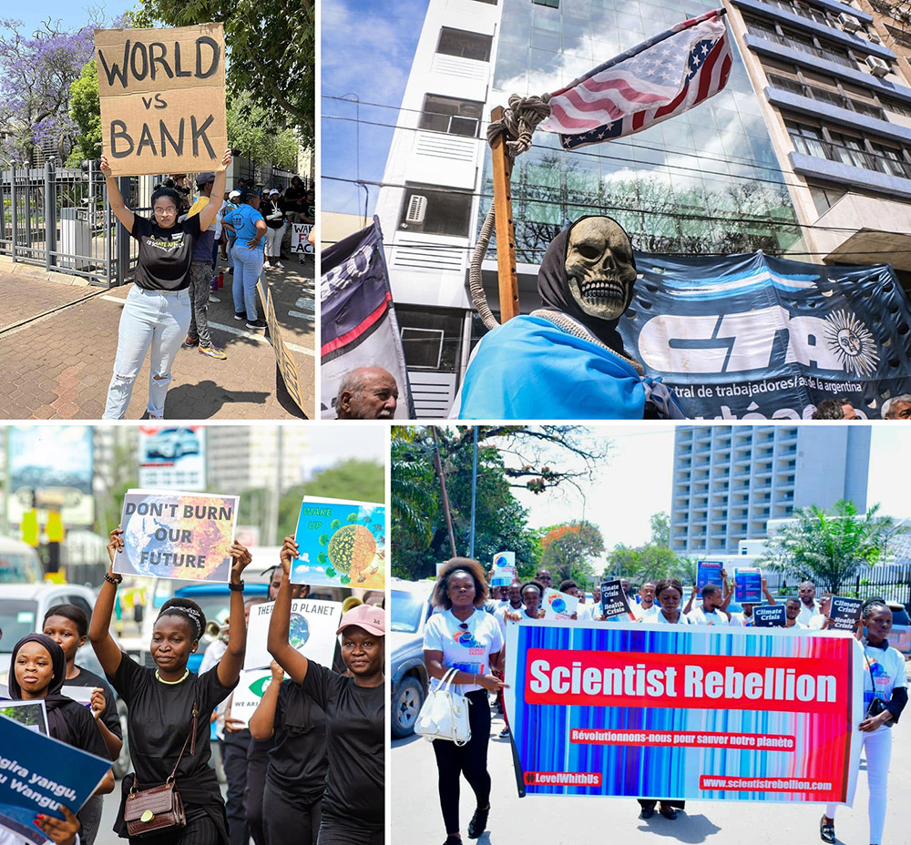 14 - 25 OCT | Worldwide: Last month saw D4C and Scientist Rebellion campaigns that were global in scope. D4C highlights include solidarity actions in South Africa and Argentina (top). Scientist Rebellion held marches in Dar es Salaam, Tanzania and outside the German Embassy in Kinshasa, DRC (below).