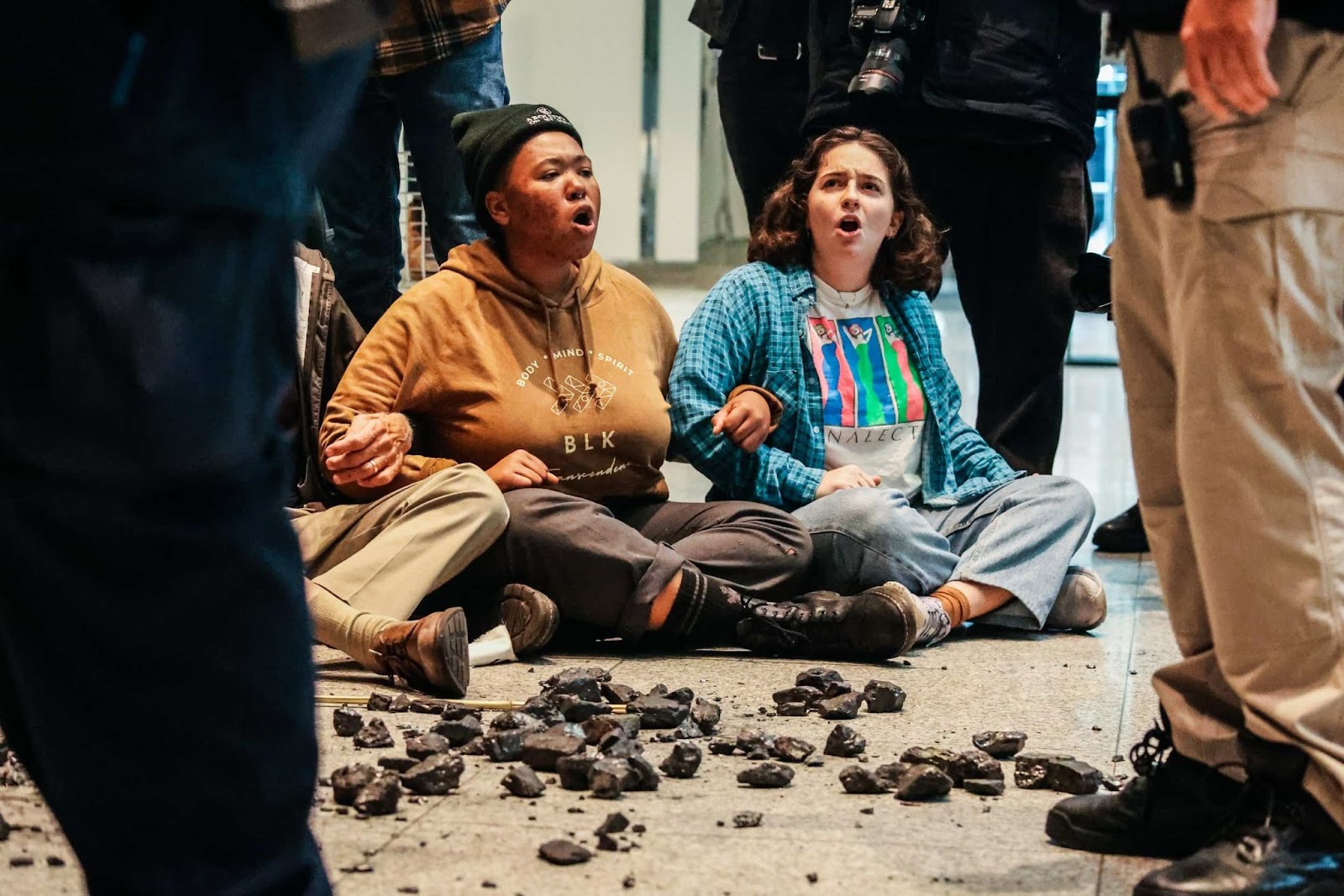 Protesters dump coal across BlackRock’s lobby floor. Photo: Adrian Childress