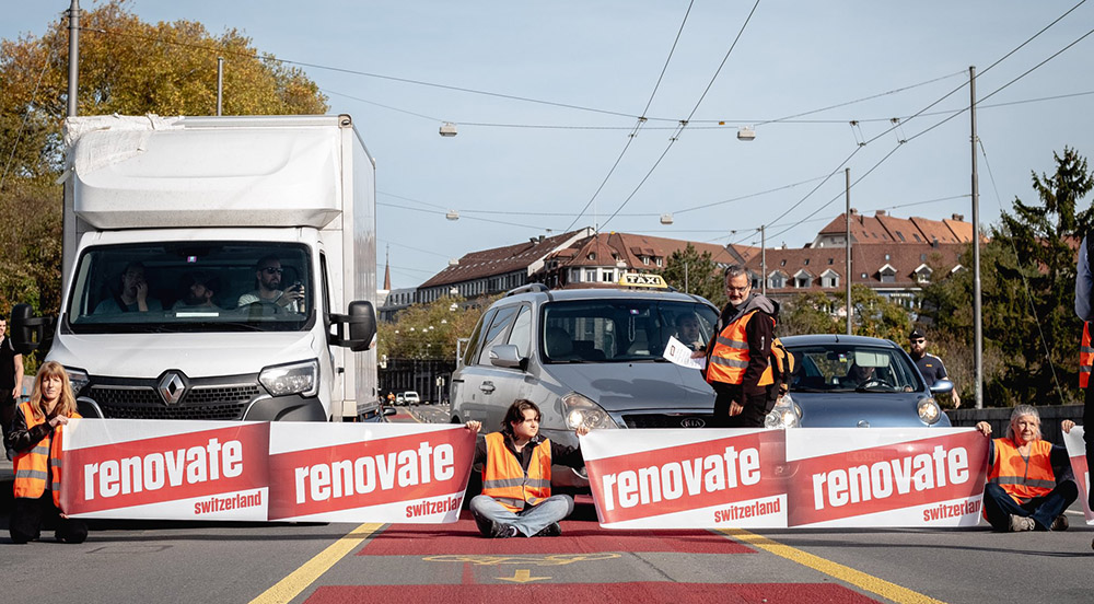 29 OCT | Bern, Switzerland: Six activists from Renovate Switzerland block a major bridge in the Swiss capital, the tenth blockade of the month. The group want the Federal Council to decree a general mobilisation for thermal renovation.