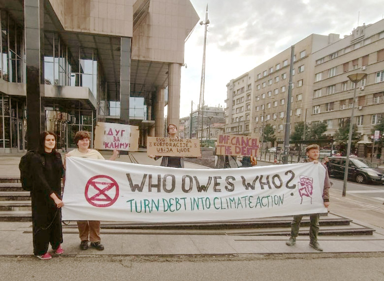 15 OCT | Belgrade, Serbia: Rebels join the international D4C coalition and stage a die-in in front of the IMF office in Belgrade.