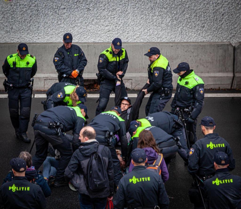 15 OCT | The Hague, Netherlands: 50 rebels blockade a major motorway, demanding the €17.5 billion in subsidies to the fossil fuel industry ends. Photo: Jaap van den Berg
