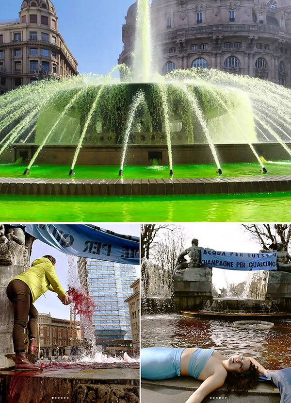 5 MAR | Italy: Fountains were dyed green in Genoa and red (with beetroot powder) in Turin to highlight Italy’s increasing water crisis. In the north, the Adige river has a water deficit of -98% and the Po, Italy’s main river, of -90%.