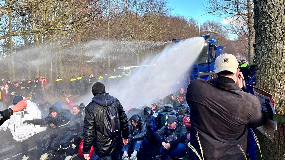 11 MAR | The Hague, Netherlands: Police used a water cannon and arrested about 700 protestors when the A12 motorway was again blockaded by thousands of rebels demanding an end to the vast fossil fuel subsidies paid by their government each year. 100 Scientist Rebellion scientists and academics, and an orchestra, were in attendance.