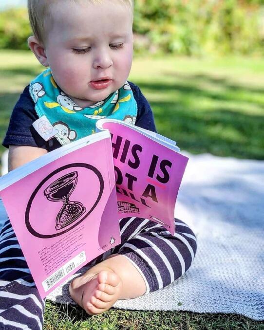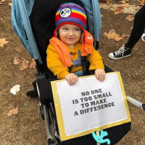 'Hi, I'm Nathaniel. I will be turning one during the Rebellion. My mummy is an XR fundraiser and my daddy teaches social justice at University. My older sister went to the Youth Climate Strike, although she is a bit too young to understand the urgency of the situation, let alone the politics behind it. I am way too little to comprehend any of it, but I like mummy's pink book with the funny sign on the back cover.
