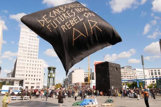 Our uprising begins. From early morning, 1000 rebels blocked the "Big Star" roundabout surrounding Berlin's Siegessäule as well as a key junction at Potsdamer Platz. As the sun rose, peaceful rebels danced and sang.