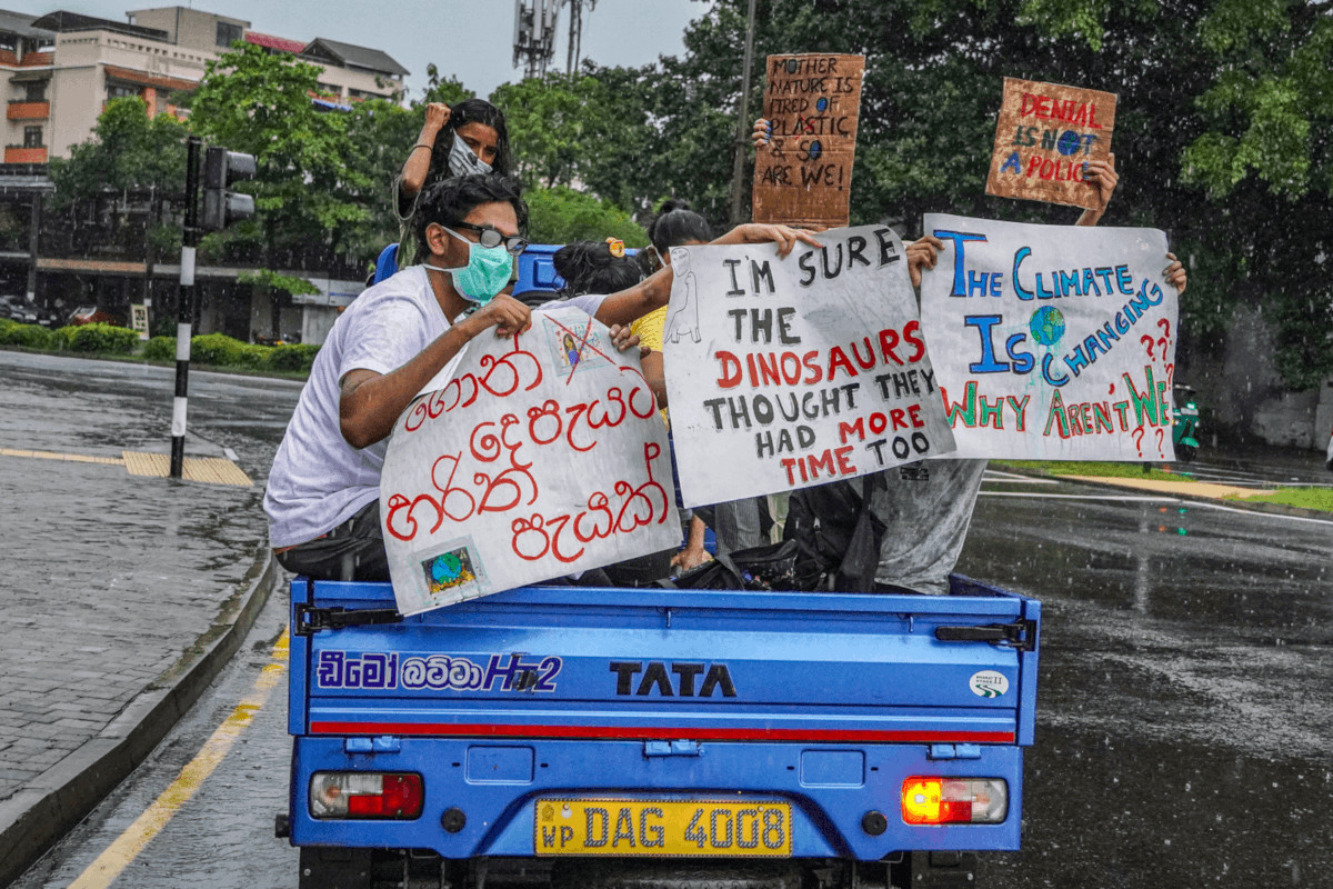 Sri Lankan rebels braving the torrential rain to launch their first ever XR action