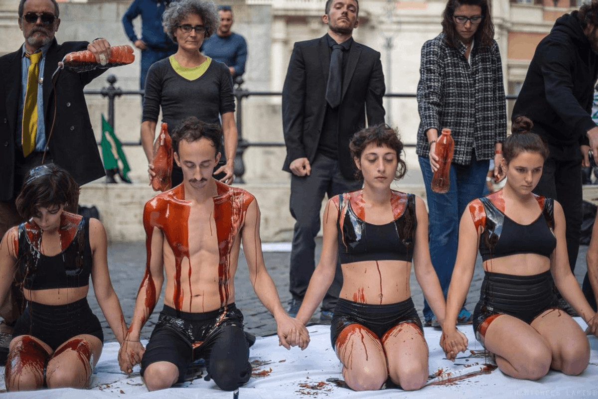 Blood runs over Italian rebels in front of Montecitorio Palace, Rome.