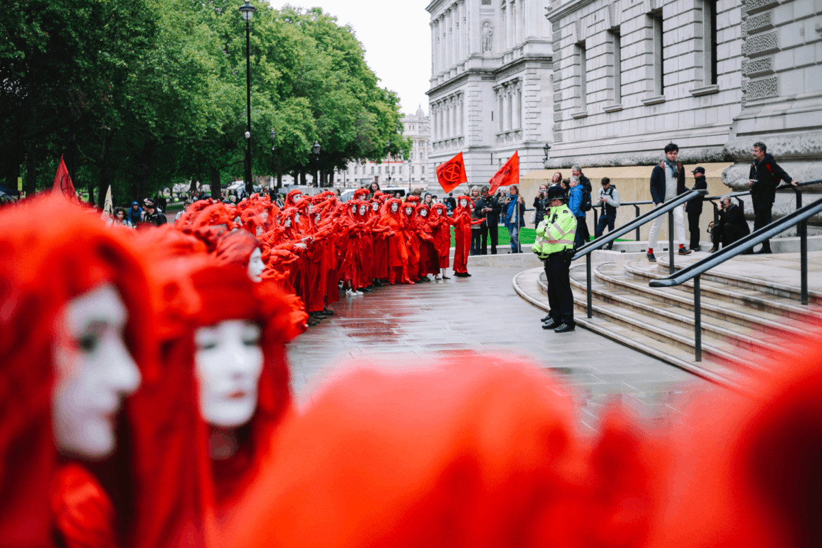 The plan was to march through the city creating swarms in key intersections as a taste of actions that will follow for the entire week. The police had a strong presence, including mounted officers. At least 10 rebels were arrested, sacrificing their liberty to draw attention to the climate emergency and the need to act.