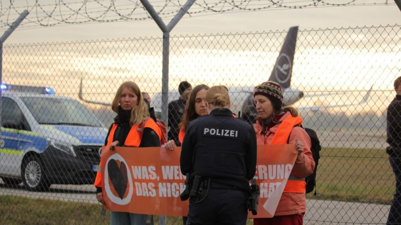 8 DEC | Munich & Berlin, Germany: Air traffic comes to a standstill at two of Germany’s largest airports thanks to a group of Letzte Generation activists sticking themselves to runways and wandering through airport grounds. Police were informed in advance to ensure the safety of all involved.
