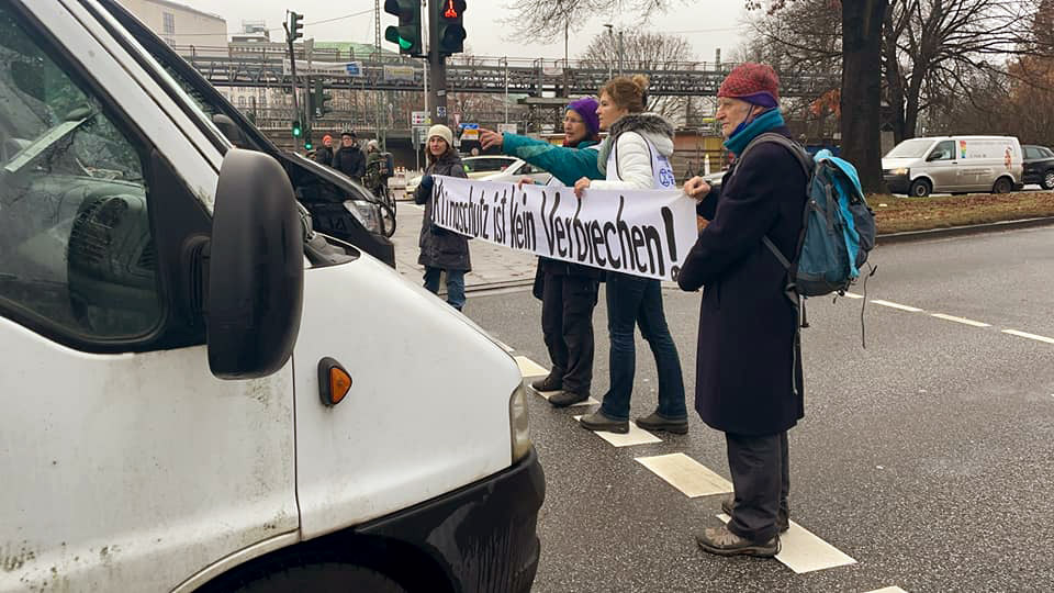 21 DEC | Hamburg, Germany: Rebels block a bridge holding a banner saying "Climate protection is not a crime" in solidarity with activists from Letzte Generation (Last Generation) who are being imprisoned for non-violent resistance.