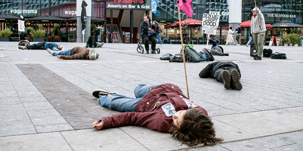 2 JAN | Utrecht, The Netherlands: Rebels at Utrecht Central lie on the cold ground. “The world will become a place without people if we continue like this.”
